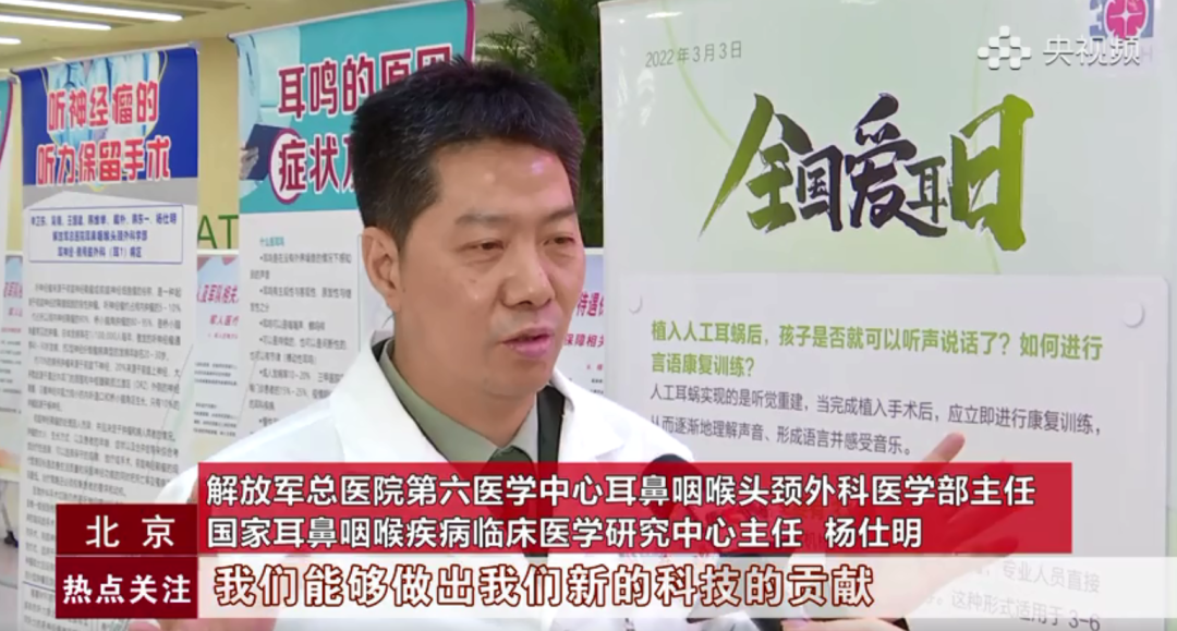 解放軍總醫(yī)院第六醫(yī)學(xué)中心耳鼻咽喉頭頸外科醫(yī)學(xué)部主任,國(guó)家耳鼻咽喉疾病臨床醫(yī)學(xué)研究中心主任楊仕明說(shuō)道:“聽覺(jué)植入顧名思義,就是把聽覺(jué)助聽的裝置植入到人體,從而幫助提高聽力。我們要建設(shè)世界一流的??破脚_(tái),通過(guò)科技的創(chuàng)新,我們能夠做出新的科技的貢獻(xiàn),改善耳鼻咽喉疾病人民的健康。要響應(yīng)習(xí)主席號(hào)召,通過(guò)科技和文化的交流,把最新的科技理念、技術(shù),也帶給一帶一路沿線國(guó)家和人民。”